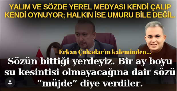 Kimsenin sahiplerini bile bilmediği yandaş medya, bütçe fazlasını köpürtüp köpürtüp sundu; biz de gülerek süreci takip ettik. Bugün de aynı yandaş medya, Yalım’ın “Ramazan ayı boyunca su kesintisi olmayacağı” yönündeki saçma sapan açıklamasını “müjde” diye manşet olarak verdi. Kış gireli, “gök yere indi” denecek kadar yağış aldık ve yağışı bile kendi kerameti gibi lanse eden Yalım ve ekibi, hâlâ musluklardan kesintisiz su akıtmayı beceremedi. Ramazan’a 15 gün kala Özkan Yalım açıklama yapmış ve “Ramazan boyu su kesintisi yaşanmayacak” demiş. Biz de “yedik” demesi beklenen medyanın bir kısmı ise bu açıklamayı dahi “müjde” diye vermiş.