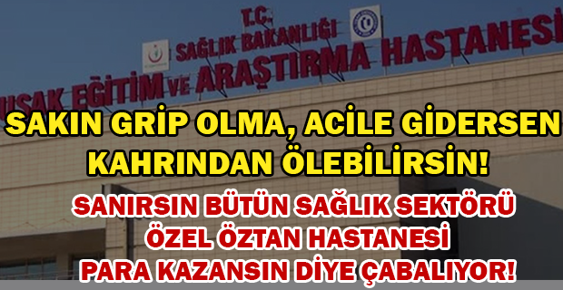 Bu gece bir arkadaşımız ekibimizden birini arayarak grip olduğunu söyledi ve iğne vurulalım gelelim beni al da dedi. Gidiyorlar Uşak Devlet hastanesi acil servisine, acil tabi bütün bölümleri tıklım tıklım neyse beklemişler yarim saat kadar sonra sıra gelmiş. Arkadaşımızı muayene eden acil doktoru size iğne vuramayız çünkü hastane de iğne yok, ancak devletin ödemediği bir ilaç var sana onu yazayım onu vurdur diyor. Sigortalı çalışan olan hasta çaresiz kabul ediyor Devletin tek kuruş ödemediği itibar edilmeyen antibiyotiği parasıyla almayı yazdırıyor ilacı ama o da ne? Bu sefer ilaç eczanelerde de bulunmuyor. Eczacı özel hastane de vardır diyor. Gidiyorlar özel hastaneye parasını verip iğneyi vurdurmaya razı olarak ama Özel Öztan hastahanesi hastadan iğne parası dışında muayene parası da talep ediyor. Yahu arkadaş biz Devlette muayene olduk siz sadece iğne vuracaksınız iğne vurma parası yeter size neden bir de muayene ücreti istiyorsunuz? Kusura bakmayın beyefendi prosedür ve anlaşma böyle Devletle. Tabi parası yetişmeyen hasta küfür ede ede hastaneden çıkıyor ve tedaviyi evde nane limona terkediyor çaresiz. Bu vakka bizzat gazetecinin gözü önünde cereyan etmiş bir vakıadır ve tamamı ile gerçektir.
