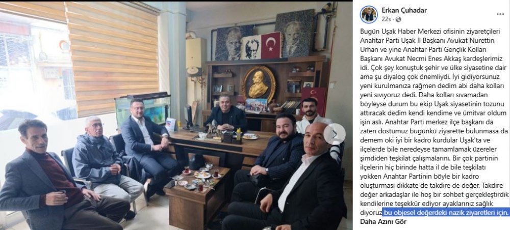 İşte Uşak Haber Merkezi İmtiyaz Sahibi Gazeteci Erkan Çuhadar'ın Facebook hesabından yaptığı ziyarete dair paylaşım.