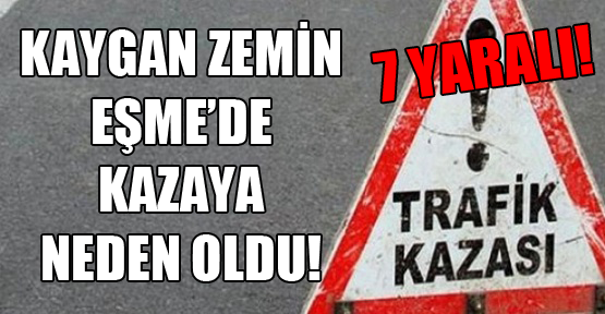 Eşme - Uşak karayolu üzerinde Elvanlar Mahallesi'nde bulunan Karayolu Bakım Şefliği mevkiinde dün aksam üzeri Durmuş Şimşek yönetimindeki 64 EU 230 plakalı aracın ıslak zemin yüzünden kontrolden çıkması sonucu meydana gelen trafik kazasında aynı ailenden 7 kişi yaralandı.