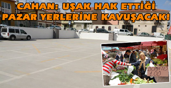 Uşak’ta bütün Pazar yerlerinde çalışma yürüttüklerini dile getiren Cahan; "İlimizde pazar yerlerinin eksikliklerini biliyoruz. Bunun yanında mahallelerimizin de pazar yerleri konusunda eksikliklerini tespit ettik. Bu bağlamda bazı mahallelerimizde pazar yeri kurulması çalışması devam ediyor. Yakın zamanda Kemalöz Mahallesi, Cumhuriyet Mahallesi ve Fatih Mahallesi’nin pazar yerlerine kavuşması planlamalarımız arasındadır. Diğer yandan mevcut pazar yerleri de vatandaşlarımızın hak ettiği standartlara gelecek” dedi.
