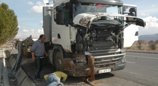 Uşak istikametinden İzmir istikametine doğru seyir halinde bulunan tır sürcüsünün dreksiyon hakimiyetini kaybetmesinin ardından yolun en sağındaki bankete girdi ve yolun kenarına yan şekilde devrildi. Kazada şans eseri ölen yada yaralanen olmazken sürücünün hafif sıyrıklarla atlattığı öğrenildi.
