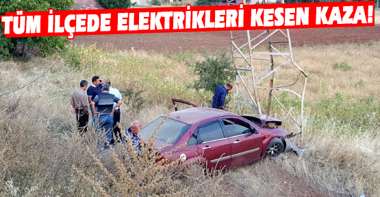 Uşak’ın Banaz ilçesinin girişinde meydana gelen kazada, otomobil trafo direğine çarpınca tüm ilçe elektrikler kesildi.