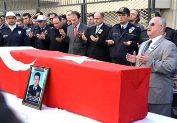 Şehit polis memuru Ömer Yazıcı'nın cenazesi törenin ardından memleketi Uşak'a getirilmek üzere uğurlandı.