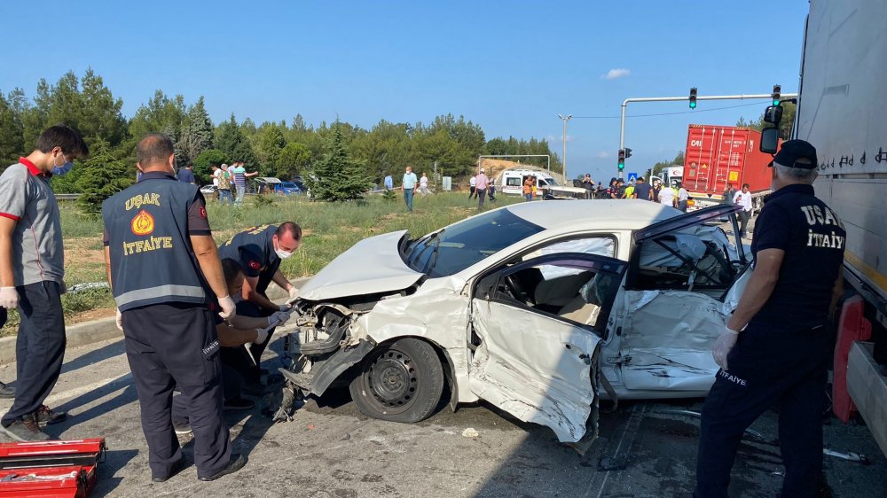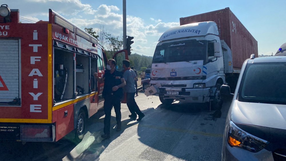 Edinilen bilgilere göre Uşak'tan İzmir yönüne ilerleyen Suriye uyruklu Aziz Mübarek idaresindeki 33 E 0134 plakalı tır, Ürünköy Kavşağı'nda kırmızı ışıkta bekleyen araçlara çarptı.