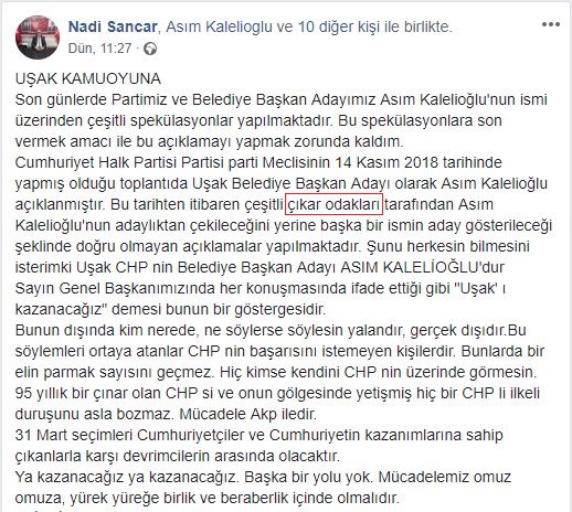 Neticesi itibarı ile ölü doğmuş bir proje olsa da Muhammet Gür'ün İyi Partiden aday yapılıp seçilmesi başka baharlara kalmış gözükse de Yalım ve Gür ikilisi bu işe çok inanmış olacaklar ki önceden hala diretmekten vaaz geçmiyorlar. Tabi bu arada her başladığı siyasi işi yarım bırakmasıyla ünlü Muhammet Gür son dakika aday adaylığından çekilebilir ya da İyi Parti Genel Merkezi dedikodulardan bunalıp aday etmeyeceğini açıklayabilir bunları yaşayarak öğreneceğiz. Ama şu bir hakikat ki Özkan Yalım siyasete girdiği günden beri Uşak anlamında siyaseti çirkinleştirdi. İyi Parti'de ilk önce tuttu bir Atatürk düşmanı tarikat üyesini İl Başkanı yaptı ve siyasetin vitrininin çirkinleşmesine vesile olacak isimlere yeni siyasi fırsatlar tanıdı. Ardından MHP'de hiç bir karşılığı ya da saygınlığı kalmamış Belediye Meclisi Üyelerini transfer etti ve meclis üyeliği yapmaya devam etmelerine de izin vererek ayrıca bir siyasi çirkinlik oluşmasını sağladı. MHP Oyları ile seçilen insanlar başka bir siyasi partiye geçtiği halde Meclis üyeliğinin nimet ve yetkilerinden yararlanmaya devam ettiler. Bununla da sınırlı kalmadı maalesef İyi Partinin Uşak anlamında sebep olduğu çirkinlikler. Geçmişte FETÖ'cü polisler ve savcılar Ülkücülere kumpas kurarken o polis müdürleri ile can ciğer kuzu sarması olan isimleri de baş tacı ettiler siyaset sahnesinde ve bu çirkinlikte Ülkücü camiayı bir hayli rahatsız etti aslında. Şimdi de son olarak rantiye çetelerinin kurulmaya çalışıldığı bir parti olarak anılmaktan hiç rahatsız olmayarak ve burada yaşananlara ilişkin tek cümle açıklama getirmeyerek şehir siyasetini bilerek yada bilmeyerek çirkinleştirmeyi sürdürüyor İyi Parti. Oysa ki CHP'nin adayı hatta İl Başkanı açıkça bizim Milletvekili ile sizin aday adayı ve İl Başkanı anlaşmış yeni bir rant çetesi daha oluşturmak hevesindeler deyip dururken İyi Parti Genel Merkezi bu açıklamalardan haberdar edilmemiş olamaz ve ayrıca hiç bir siyasi parti teşekkülü böylesi açıklamalara ve suçlamalara kayıtsız kalamaz. Ya çıkarsınız bizim aday adayımızın böyle bir planı yok ve biz arkasındayız aday yapıyoruz dersiniz adam gibi konu kapanır. Yada çıkar dersiniz ki evet maalesef Yalım ile Gür bizim İl Başkanını da kafalayarak böyle bir plan içine girmişler biz de gereğini yaptık ve aday adayımızı aday adaylığından da azlettik dersiniz. Tabi bu eleştirimiz sadece İyi Parti Genel Merkezine ilişkin değil. Aşağı yukarı aynı eleştirilerimizi CHP Genel Merkezi için de tekrar edebiliriz. CHP Genel Merkezi de Sivaslı'da ben belediye başkanı kalmalıyım derken önüne gelene hatta CHP Milletvekillerine sarhoş kafa ile uluorta küfreden adamı neden partiden ihraç edip siyasetin çöplüğüne atmaz mesela? Yada CHP İl Başkanının konuşmasını yayınladığı düşünülen, başka bir siyasi parti ile rant çetesi kurma planı yaptığı iddia edilen, daha önce de şimdi aday dahi yapılmayan ve Erdoğan'ın teşekkür etmediği tek AKP'li belediye başkanı olarak siyaset tarihindeki yerini almaya hazırlanan Nurullah Cahan ve tayfası ile de yakınlık ve çıkar ilişkilerinin olduğu konuşulan Yalım ile ilgili neden hiç disiplin süreci işletmeyi düşünmez? Soruların ardı kesilmez. Biz bu noktada sözü CHP Uşak İl Başkanı Nadi Sancar'ın paylaşımına getirelim. Sancar yaptığı açıklamada Kalelioğlu'nun İyi Parti lehine çekilmesi gibi bir durumun bahse konu bile olmadığını belirtirken Yalım ve Gür'ün ismini vermek yerine kendilerinden "ÇIKAR ODAKLARI diye bahsetmeyi de ihmal etmemiş. Ayrıca sayılarının bir elin parmaklarını geçmeyecek kadar az olduğunun ve hiç kimsenin kendisini partisinin üzerinde görmemesi gerektiğinin de altını çizmiş ki bizce de haksız sayılmaz. İşte Nadi Sancar'ın Yalım ve İyi Parti'yi hedef alan o açıklamaları.