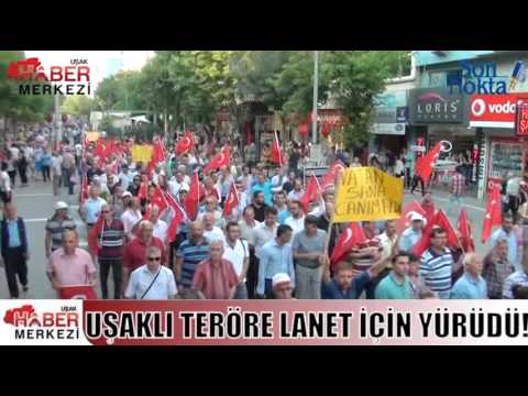 Uşak'ta sivil toplum kuruluşları ve siyasi partilerin katılım sağladığı protesto yürüyüşünde teröre lanet yağdı.