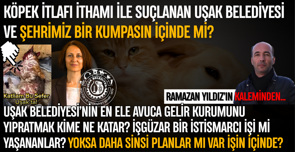 Bildiğiniz üzere, geçtiğimiz günlerde Uşak Belediyesi hayvan barınağından, ölmüş köpek ve kedilere ait olduğu görülen bazı görüntüler sosyal medya üzerinden ülke gündemine servis edildi. Birgün Gazetesi ve Evrensel gibi bazı gazetelerin de balıklama daldığı habere göre, Uşak Belediyesi köpekleri öldürmüş ve itlaf ettikleri köpekleri gömüyormuş. Haberlerin ardından doğal olarak Uşak Valiliği soruşturma açtı ve anlaşılan o ki Valilik işin aslını ortaya çıkarmak konusunda kararlı. Tarım İl Müdürlüğü, Uşak Doğa Koruma ve Milli Parklar Müdürlüğü, emniyet, jandarma ne varsa ilgili ve yetkili kurum anlamında derhal harekete geçtiler. Soruşturma sürmekte olup, soruşturmanın sonucuna dair ilerleyen günlerde mutlaka bir açıklama yapılacaktır. Varsa bir ihmal, kusur ya da kasıt, illa ki adli ve idari işlemler yapılacaktır. Ki bildiğiniz üzere, şehir protokolümüz bu tip konularda oldukça hassas davranmaktalar zaten. Olan gelişmeleri paylaşacağız. Lakin ben kendi araştırma ve gözlemlerim neticesinde şimdiden söyleyebilirim ki, birileri bir bardak suda fırtına koparmak ve Belediye Veteriner İşleri Müdürlüğü’ne, belki de belediye başkanı ve yardımcılarına zarar vermek maksatlı algı operasyonu yapmak derdinde olabilir.