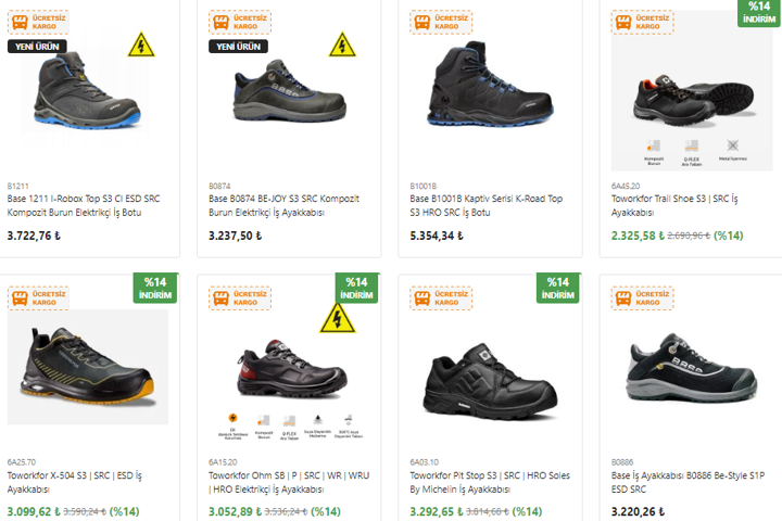Base ve Toworkfor markaları, iş güvenliği ayakkabıları alanında dayanıklılık ve konforu bir arada sunan öncü markalardır. Entegre Safety olarak, bu markaların en popüler modellerini müşterilerimize sunmaktan gurur duyuyoruz. Şimdi, BT-100 indirim kodunu kullanarak, mevcut indirimlere ek olarak 100 TL indirim fırsatını yakalayabilirsiniz. Bu kampanya, kaliteli iş ayakkabısı arayışında olan herkes için cazip bir fırsat sunuyor.